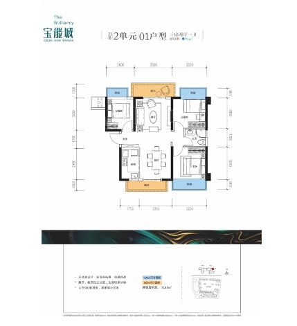 3室2厅1厨1卫 建面91m²
