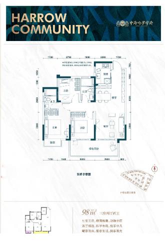 3室2厅2厨1卫 建面98m²