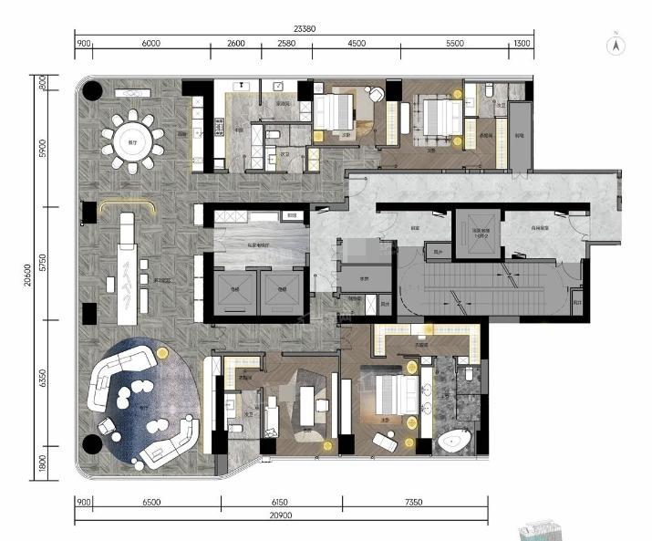 2,户型居室:【4室3厅1厨4卫】,建筑面积:【405平方米】