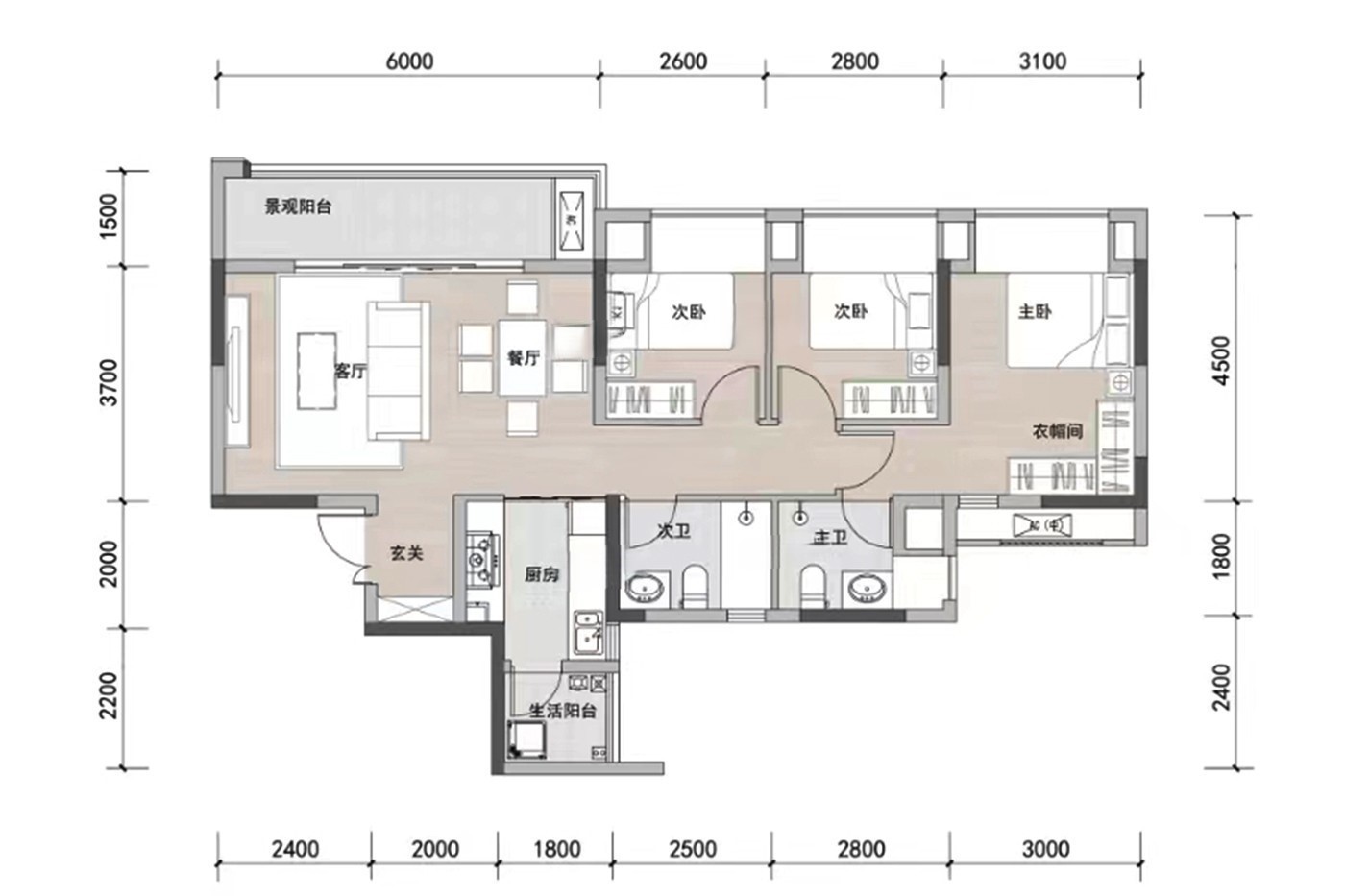 3室2厅2厨1卫 建面87m²