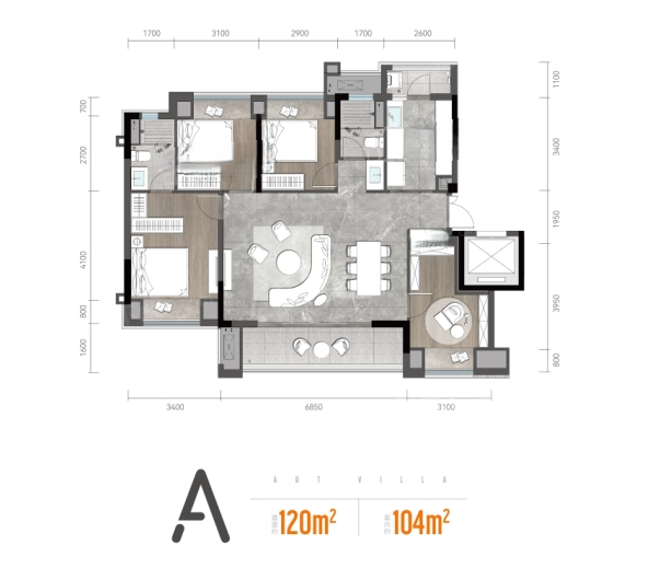 4室2厅2厨1卫 建面120m²