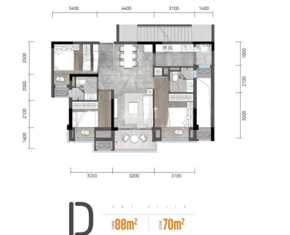 3室2厅2厨1卫 建面88m²