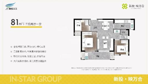 3室2厅1厨1卫 建面81m²