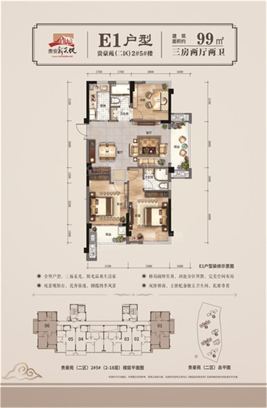 99,户型居室:【3室2厅1厨2卫】,建筑面积:【99平方米】