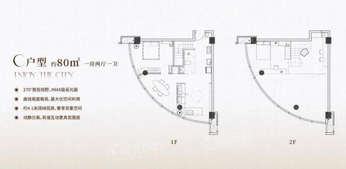 1室2厅1厨1卫 建面80m²