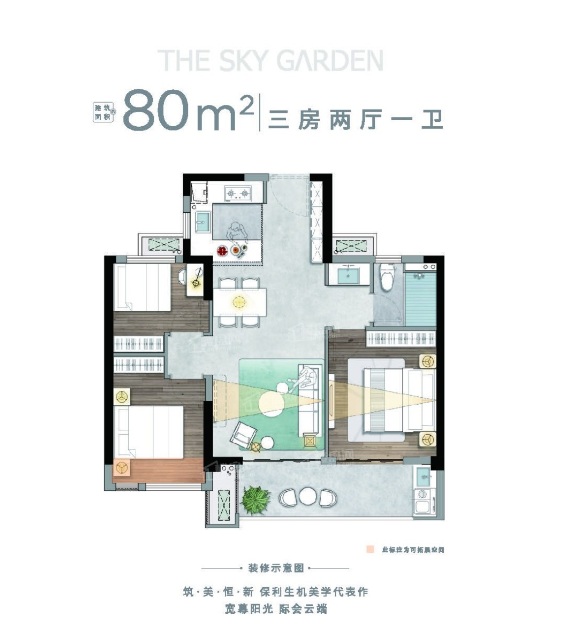 1,户型居室:【3室2厅1厨1卫】,建筑面积:【80平方米】