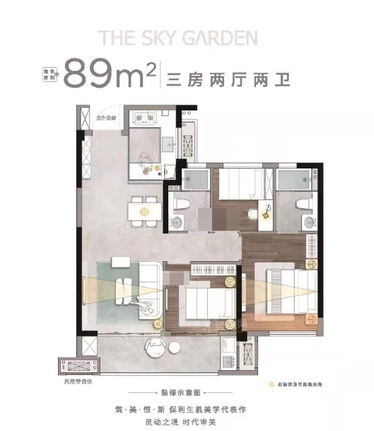 2,户型居室:【3室2厅1厨2卫】,建筑面积:【89平方米】