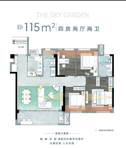 3,户型居室:【4室2厅1厨2卫】,建筑面积:【115平方米】