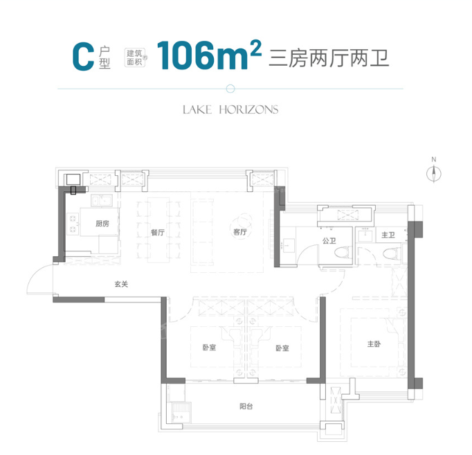 2,户型居室:【3室2厅1厨2卫】,建筑面积:【116平方米】
