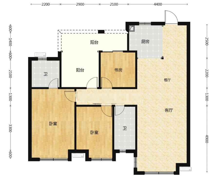 107,户型居室:【2室2厅1厨2卫】,建筑面积:【107平方米】