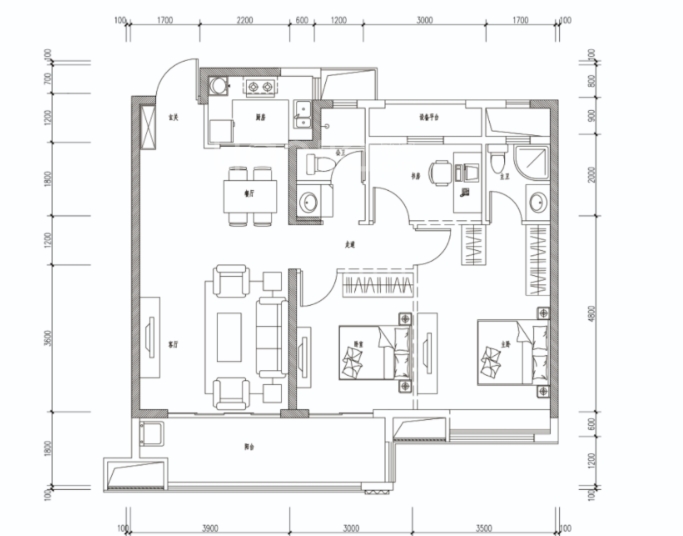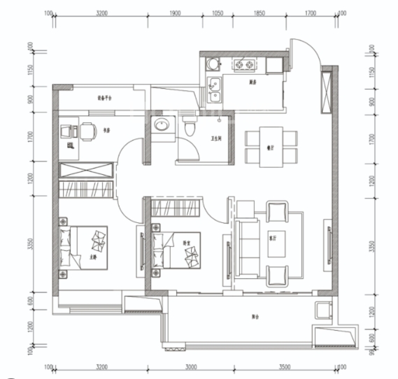 3室2厅2厨1卫 建面107m²
