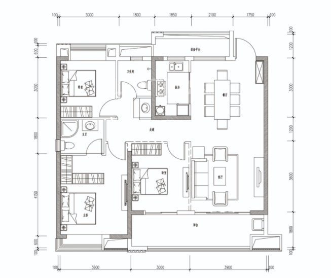 3室2厅2厨1卫 建面118m²