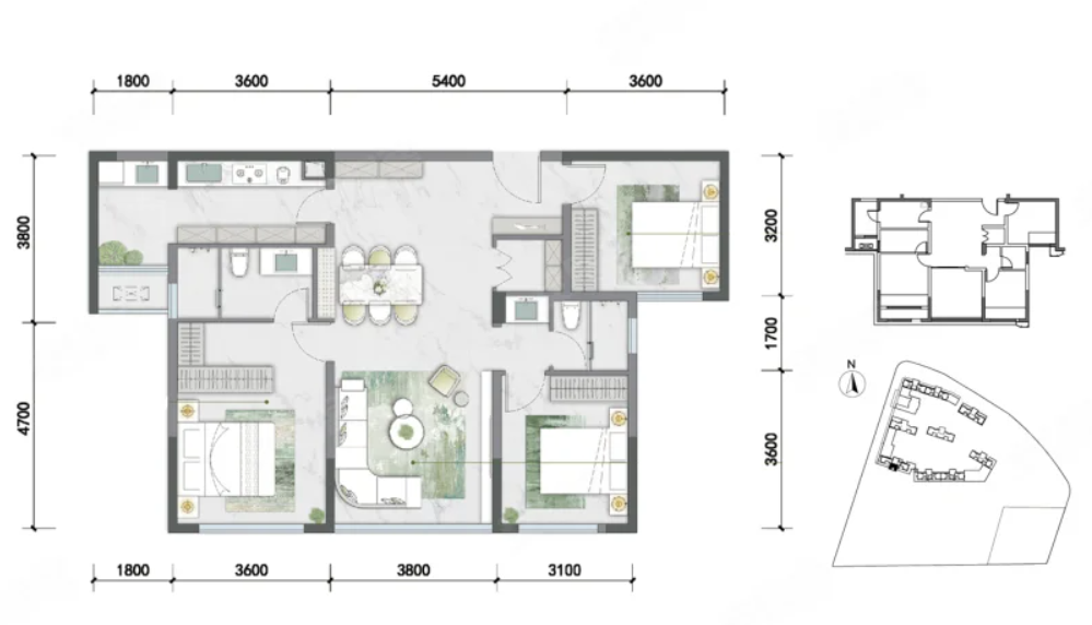 3室2厅2厨1卫 建面106m²