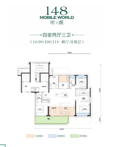 148,户型居室:【4室2厅1厨3卫】,建筑面积:【148平方米】