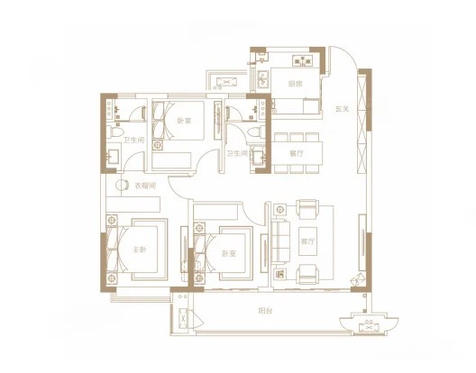 3室2厅2厨1卫 建面120m²