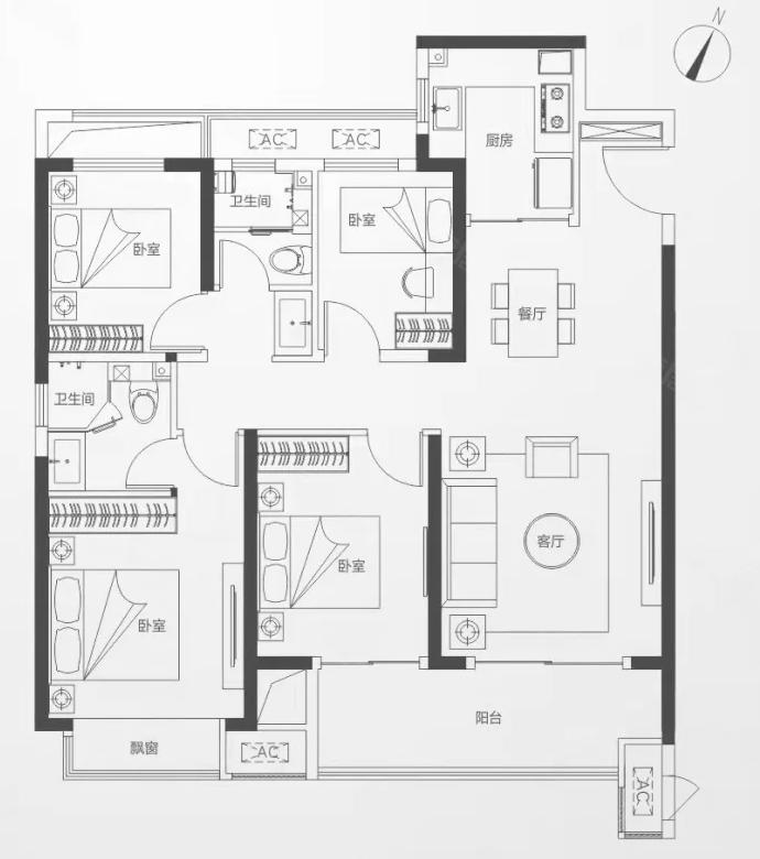 4室2厅2厨1卫 建面128m²