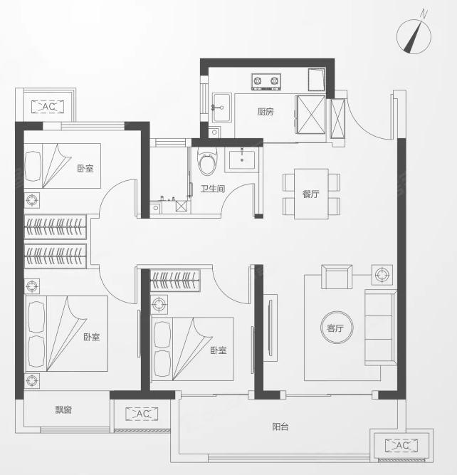 3室2厅1厨1卫 建面93m²