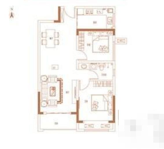 2室2厅1厨1卫 建面89m²