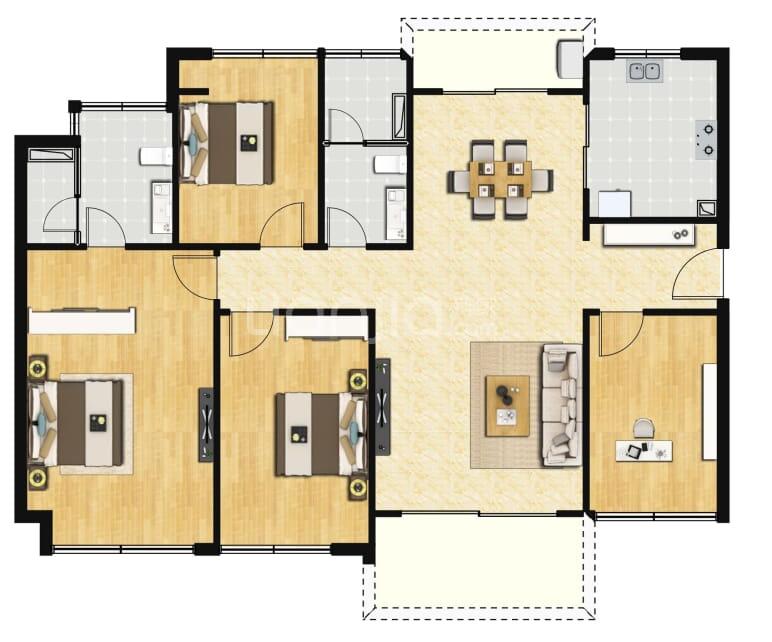 4室2厅2厨1卫 建面118m²