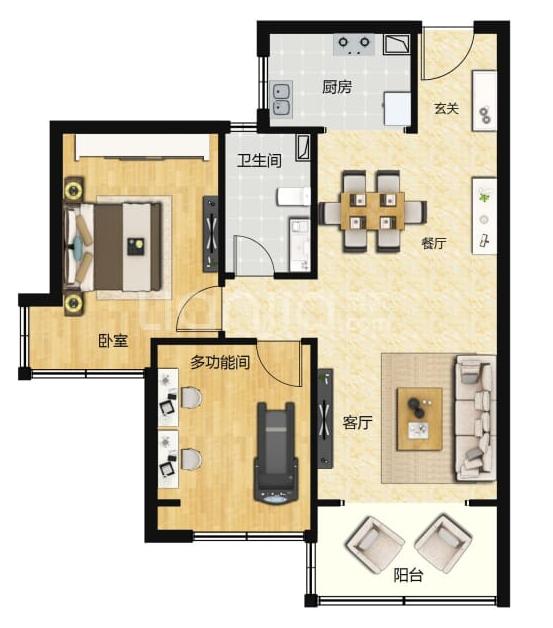 2室2厅1厨1卫 建面76m²