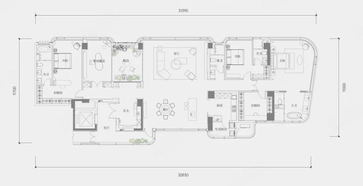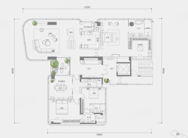 4室2厅4厨1卫 建面290m²