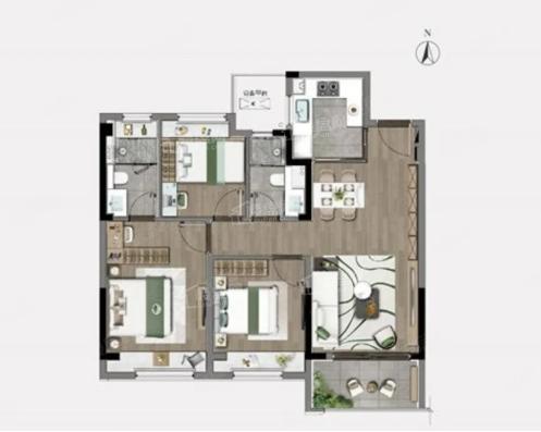 3室2厅2厨1卫 建面96m²