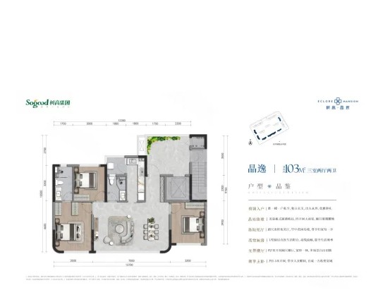 3室2厅2厨1卫 建面103m²
